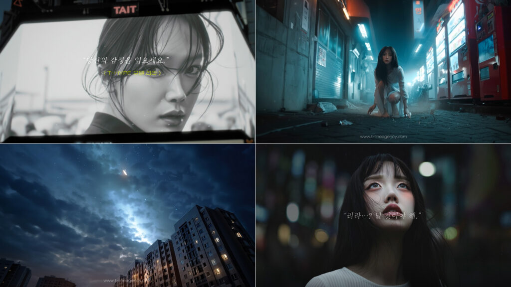 What do you manufacture? “무엇을 제작하는 회사인가요?” 모델 피팅 (Basic) 피지탈 모델 (Physical + Digital) = 실제와 가상으로 공존하는 모델피지탈 모델과 AI 생성모델과 함께 “실사촬영 + AI (Face Swap)” 작업을 통해 자사 온라인몰에 필요한 상품의 모델 착장 컷을 제공합니다. 매거진 (Magazine) 다양한 AI 작업을 통해 피지탈 및 AI 모델의 다양한 이미지를 표현함과 동시에 브랜드톤에 알맞은 룩북 및 잡지 화보 컷을 제공합니다. SNS용 내츄럴한 이미지 생성을 통해 실사와 같은 자연스러운 이미지를 표현합니다. 숏폼 영상 (Short form) 차별화된 브랜딩을 위해 상품의 컨셉을 더욱 돋보이게 할 수 있는 상품의 어라운드 영상을 통해 브랜드 이미지를 향상시킵니다. 브랜등 상품을 컨셉 쇼츠 영상을 통해 브랜드 이미지를 지속적으로 노출할 수 있도록 다양한 컨텐츠를 제공합니다. 기타 상품 (Etc.) 시계/쥬얼리 (Watch / Jewelry) 뷰티 (Beauty) AI-Short Drama 소속 모델 이미지를 활용한 AI. 숏드라마를 제작합니다.이를 통해 다양한 브랜드 상품을 노출 시킬 수 있습니다. Business registration number. Business number : 391-87-01570 Planning business registration number. Planning number : 2019-000162 Business address. 507, Teheran-ro, Gangnam-gu, Seoul, Republic of Korea online content. Copyright © T-LINE.co.Ltd. All Rights Reserved.